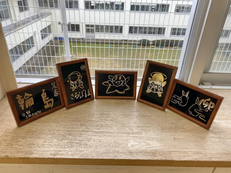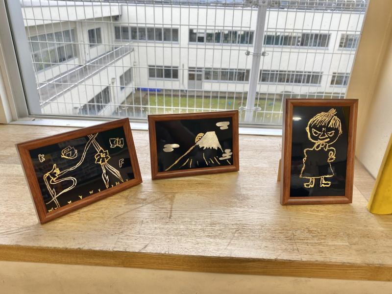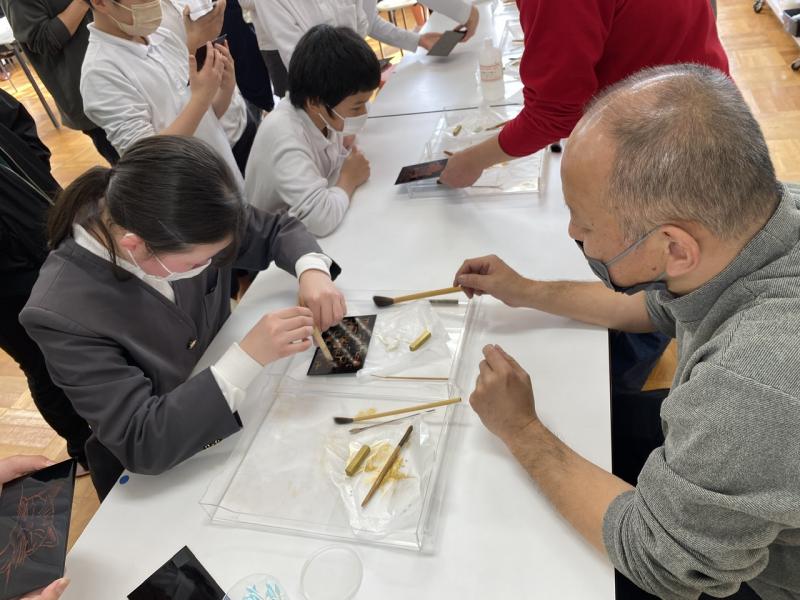 出来上がった作品を見ると、どれも丁寧に美しい仕上がりになっていました!輪島蒔絵業組合の皆さん、保護者の皆さん、お忙しい中参加していただきありがとうございました!
