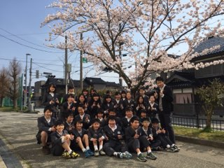 満開の桜に負けない元気いっぱいの5年生が集合しました。