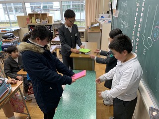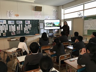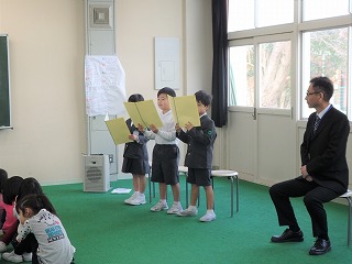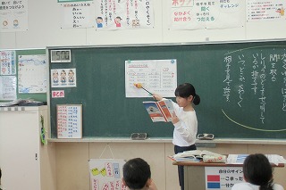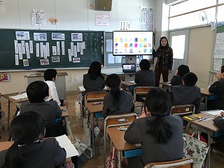 最後には、子どもたちがシンシア先生に日本の学校生活のよいところ、楽しいところを考え、紹介していました。