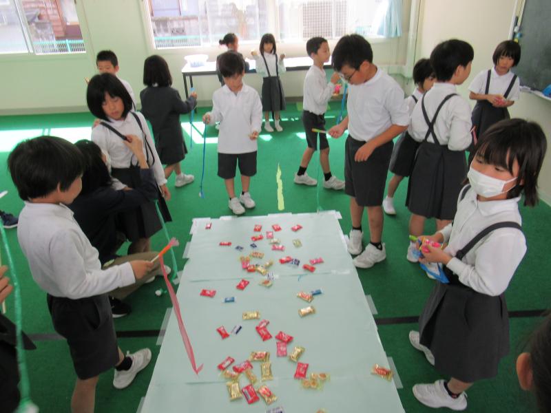 秋のおもちゃランドを開催しました!2年生を招待してのこの企画は、ほぼ、1年生の子どもたちのみで、考え、運営をしてきました。2年生にも喜んでもらえて良かったですね!