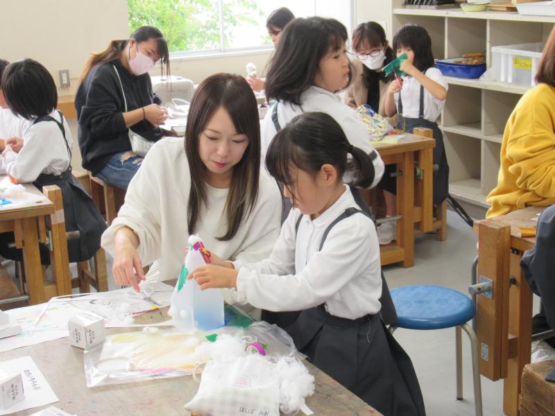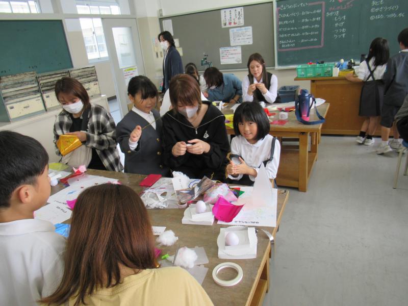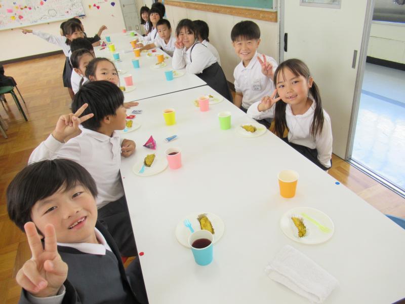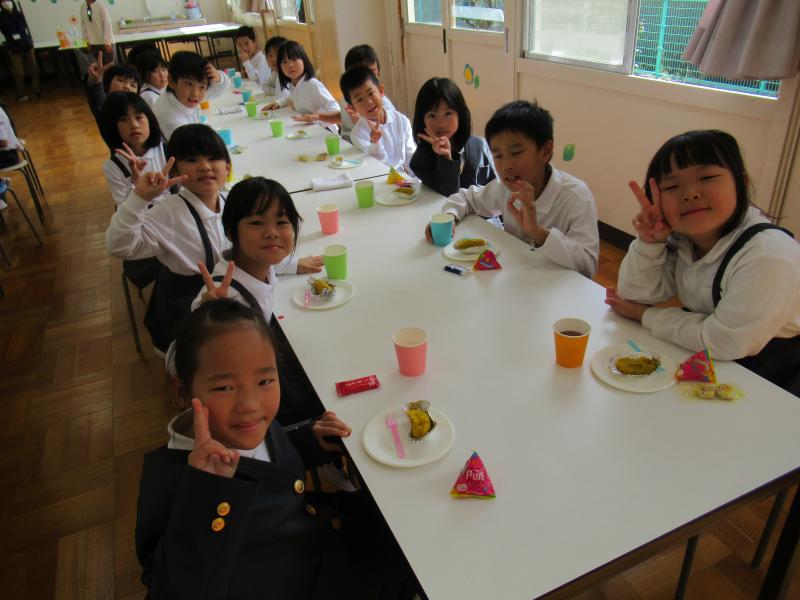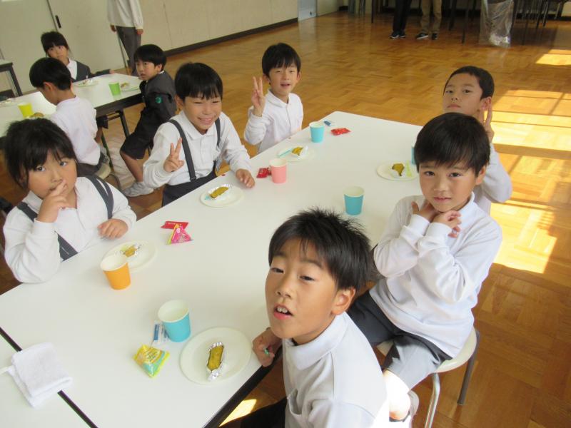 始めに、2年生が計画した「お菓子釣りゲーム」や「カードゲーム」をして遊びました。その後、2年生が作った、スイートポテトを食べました。1年生はおいしそうに、笑顔で頬張っていました。