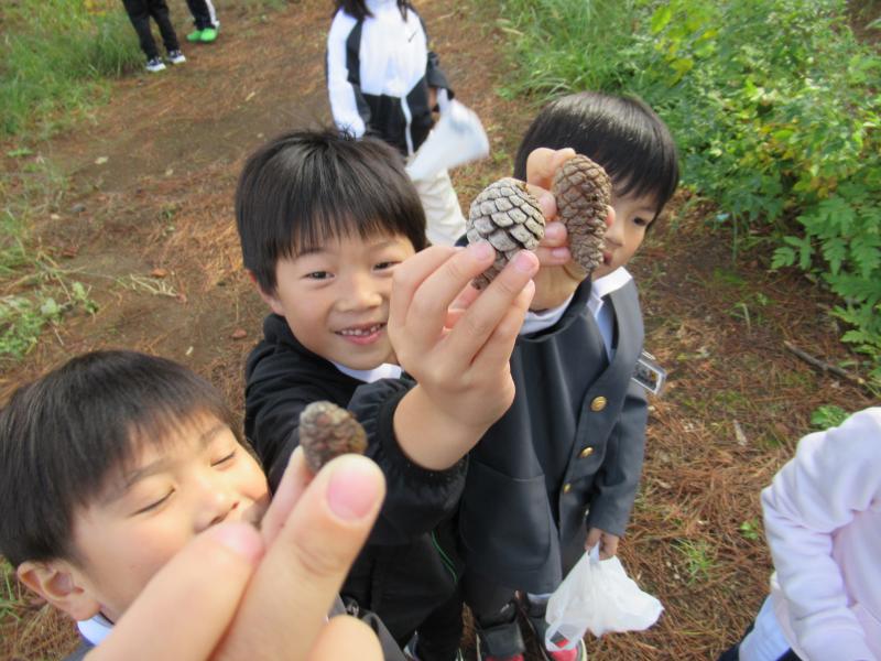 先日、一本松公園に秋見つけに行ってきました。松ぼっくりやどんぐり、葉っぱなど、子どもたちは秋のおもちゃ作りで使えそうな材料を楽しみながら探すことができました。