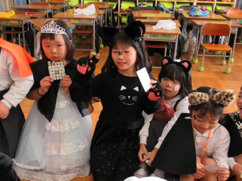 少し遅いハロウィーンパーティーを行いました!運動会から、様々な行事、そして学校生活、もちろん勉強に頑張ってきた1年生!みんなで楽しい時間を過ごし、頑張ってきた自分たちを褒めてあげる時間です!!