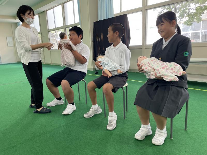 昨日は、助産師である奥野和美先生を講師としてお招きし、「こころの授業」が行われました。いのちのはじまりについてのお話、妊婦体験や赤ちゃん人形の抱っこ体験などの様々な体験活動を通して、命の大切さについて学ぶことができました。
