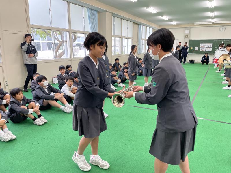 11月14日(火)に、金管鼓隊の引き継ぎ式が行われました。6年生から鳳至小学校の伝統である金管鼓隊を引き継ぎ、いよいよ5年生が主となって取り組んでいく番となりました。