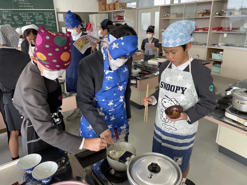 今日は家庭科で調理実習を行いました。水の量や火加減を調節しながら、どのグループもおいしそうなご飯と味噌汁を作ることができました!後片付けも率先して行なっており、最後までみんなで協力して取り組むことができました♪