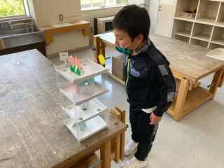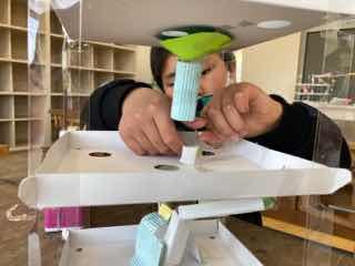 図工の時間にビー玉を使った迷路作りに取り組みました。