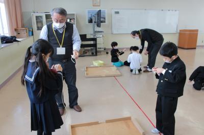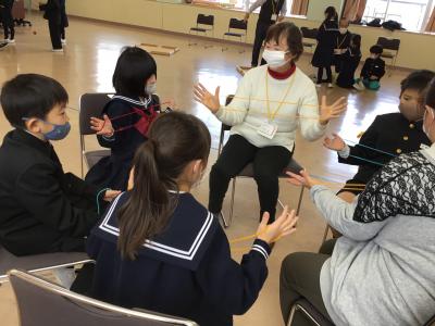 14日(金)の3.4限目の生活科の時間に、6名の昔遊び名人さん(町の先生)をお招きして体験学習をしました。4~5人のグループに分かれて、「こま回し」「あやとり」「絵かき歌」「けん玉」「おはじき」「ゴムとび」の各コーナーを回り、名人さんに遊び方やこつなどを教えていただきました。「できた!」「見て!」「もう一回!」と声をあげながら、友達とたっぷり楽しんだ1年生。これから、外で遊べない休み時間などに取り組んで、さらに技をみがきます。町の先生方、お寒い中ご来校いただきありがとうございました。