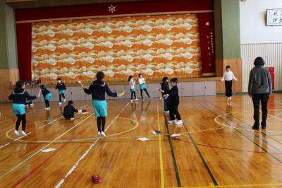 1月24日(月)から、冬場の体力づくりと縄跳びの技能向上をめざして、「縄跳び旬間」の取組が始まりました。密を防ぐため、長休みの体育館を2学年で使用します。今日は、2年生と3年生が、個々のめあてを持って、友達と教え合い励まし合いながら頑張っていました。寒さに負けず、体を鍛えましょう。ライバルは、昨日の自分!