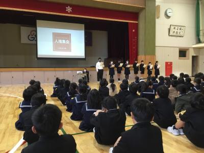 12月1日(金)人権週間にあわせて、全校で人権集会を行いました。その中で、後期児童会運営委員が、絵本「ええところ」の読み聞かせと「いいところ見つけ」の取組のお知らせをし、一人一人の大切な人権を守り、思いやりのある言動をしよう、良いところをたくさん見つけて伝えようと呼びかけました。前期以上に「自分から仲良く、自分から元気に、自分から気持ちよく」を心がけながら、みんなであたたかい気持ちで楽しく学び合いましょう。