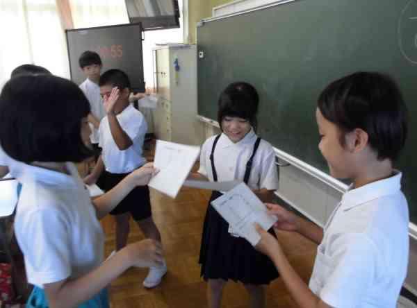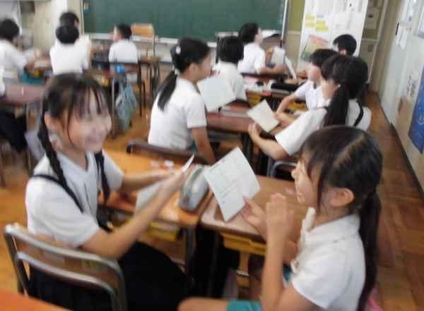 毎月2回、朝自習の時間に「コミュニケーションタイム」を行っています。ねらいは「自分の考えに理由をつけて友だちに伝えること」「友だちの話にあたたかな反応を返しながら最後まで聞くこと」です。「聞く」は思いやりの第一歩です。どの学年もしっかり友だちの話に耳を傾け「うんうん」「いっしょだ」「そうなんだ」と反応を返しています。あたたかな会話を繰り返す中で、自然と笑顔がこぼれてきます。