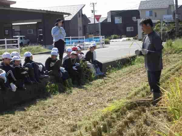 岡元農場さんの協力を得て「稲刈り」を行いました。一株ずつ鎌で刈ったあと、コンバインで脱穀します。一粒のお米も無駄にしないよう、子どもたちは本当に丁寧に稲刈りを行っていました。保護者の方もたくさん応援に来てくださり、ありがとうございます。食べ物をつくることの大切さと大変さをしっかり学んだ1日でした。