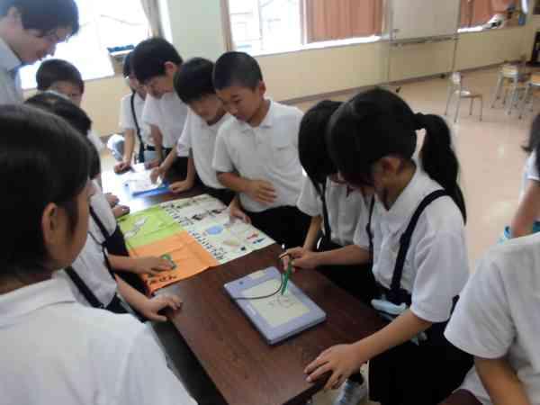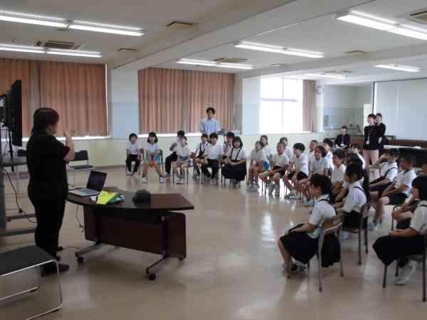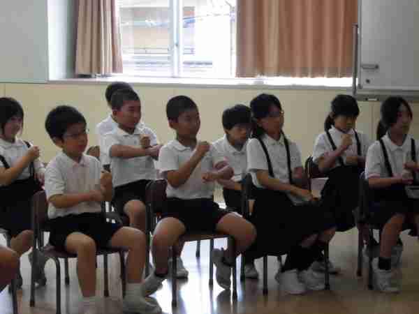 福祉について学ぶ2時間目です。今日は、「手話」や「光るインターフォン」、気持ちを伝えるサインが書かれた「バンダナ」などを教えてもらいました。見えにくいときは眼鏡をかけると見えます。聞こえないときは情報を写真や文字にすると伝わります。ちょっとした工夫で不便は解消されます。子供も大人も、目や耳や足の不自由な人も、女性も男性も日本人も外国人も・・・みんながスムーズに幸せに生活できるようになるために、できることを考え続けていきます。