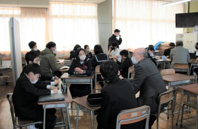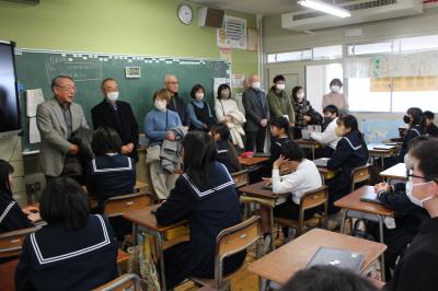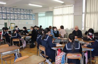 3月7日(木)5限目に、6年生がこれまで総合的な学習の時間に能美市の魅力やSDGsについて学んできたことをCS委員や地域の方10名に発表しました。テーマ〔環境・ゴミ問題、人口減少、少子高齢化、動物・自然、食品ロス〕毎にグループを作り、地域の方と課題解決に向けて意欲的に話し合いました。能美市のゴミのリサイクル率が低いことをはじめ、新しい発見が多くありました。知る、行動する、SDGsを意識する、足元を見直す、ごみを出さない、無駄に買わない、最後まで使い切る、自然や物を大事にするといった日頃の積み重ねや工夫の大切さを学びました。能美市のよりよい未来のために話し合い知恵を出し合うことを今後も続けていきたいです。地域の皆さん、これからもよろしくお願いします。