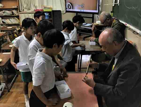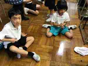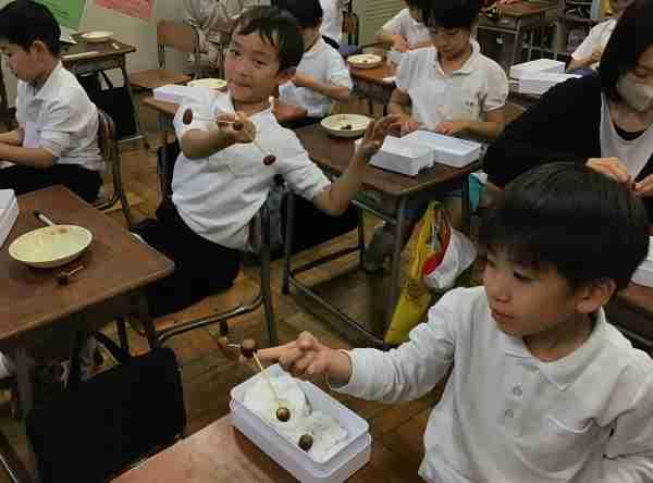 どんぐりを使って、コマややじろべいをつくりました。穴あけは危ないので地域の先生に開けていただきました。竹串をさしたり、バランスをとったりするのが難しかったですが頑張って作りました。