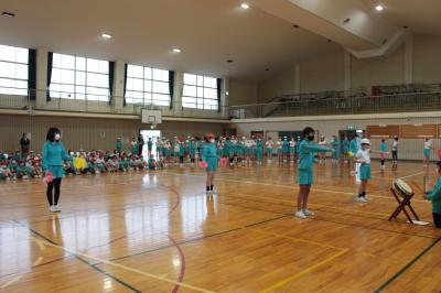 いよいよ今週の22日(土)に運動会が行われます。初めての全校練習は、雨天のため、体育館で行いました。今日は、「全校エール」の練習を応援団を中心に、「真剣」・「本気」を大切に取り組みました。感染症対策のため、大きな声を出すことはできませんが、手拍子・足拍子・体の動き一つ一つに気持ちを込め、力を合わせて頑張りました。本番が楽しみです。