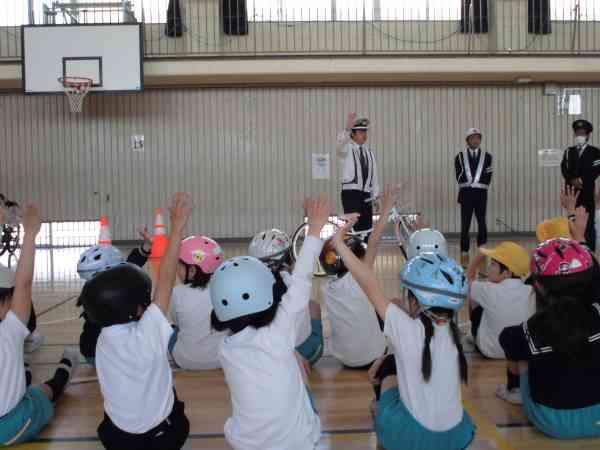 5月24日に警察・交通推進隊・学校運営協議会の方々に教えていただきながら、自転車教室が行われました。発進するときは必ず後ろから車が来ないか確認する、横断歩道や見通しの悪い曲がり角では一旦停止など大切なことを丁寧に教えていただきました。今回の学びを活かして安全に自転車に乗ってください。