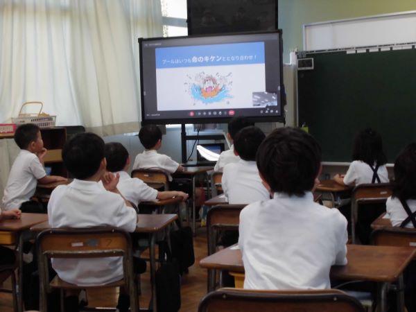 6月19日にプール開きを行いました。体育担当の先生から安全に水泳教室を行うための約束を確認した後、担任から体調を整えることや心構えについてさらに詳しい説明がありました。今年度は学校のプールが使えないため、市内の学校や施設のプールをお借りして水泳教室を行います。先生の話をしっかり聞いて安全で楽しい水泳教室にしましょう。