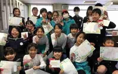 2学期にたくさん本を読んだ「多読賞」の表彰を行いました。おめでとうございます。これからも本に親しみ、心を豊かにしていってください。