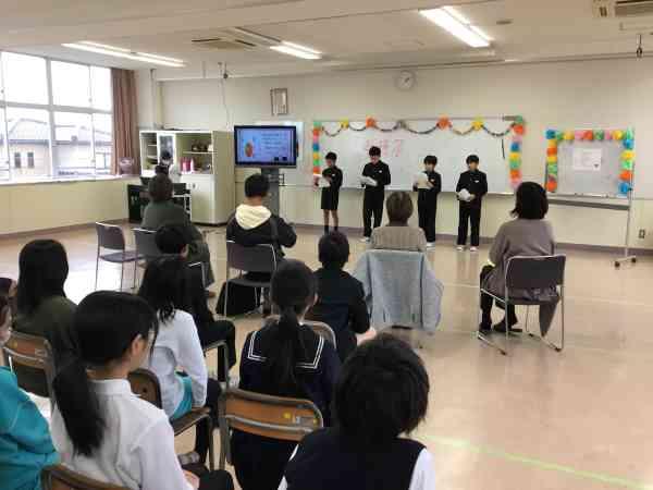 この1年、米作りについていろいろ教えていただいた岡元さん、ごはんを炊く調理実習でお世話になった学習サポーターの方々に感謝の気持ちを伝えるための「収穫祭」を開きました。米作りから学んだことを発表したり、米作りの1年を劇で演じたりしました。もちろんおいしいお米もしっかり味わいました。地域の皆様のご支援で、子どもたちは豊かに学ぶことができています。本当にありがとうございます。