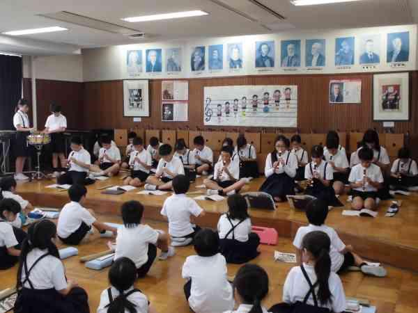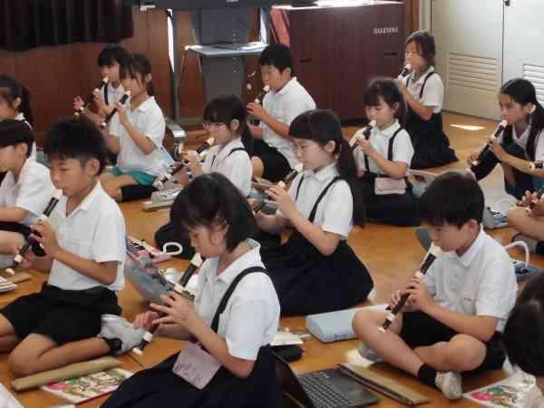 3年生と6年生が合同音楽会を開きました。リコーダーや合唱など、これまでの成果をお互いに披露した後、最後は一緒に「茶摘み」で盛り上がりました。3年生にとって、6年生のきれいな歌声や演奏は、大きな目標になりましたね。