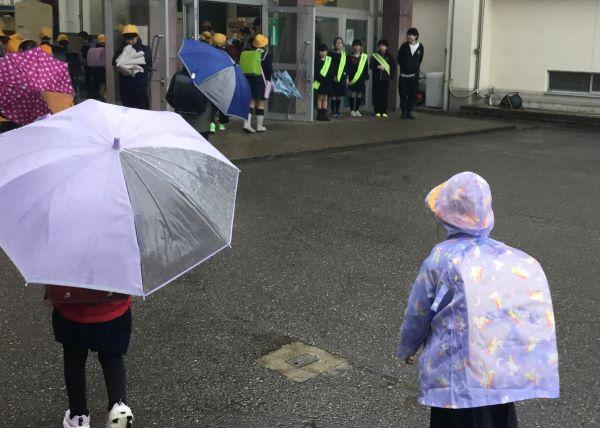 毎月15日は「ふれあいあいさつデー」です。早速、運営委員の皆さんがあいさつ運動に取り組みました。「おはようございます!」「おはよう!」雨の中、元気な挨拶が響きわたりました。