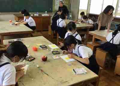 絵画:先生に物の見方、描くときのコツを教えていただきます。