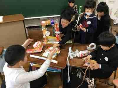 2年:おもちゃランドの準備。1年生に楽しんでもらえるよういろいろ考えています。