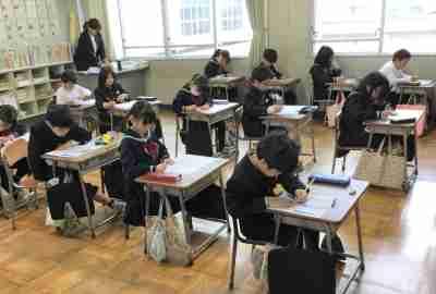 6年:ナップサックづくり。ミシンの使い方も完璧です。