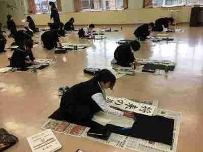 6年:書初めの練習。一文字一文字に気持ちを込めます。