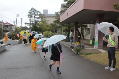 今年度最初の「能美市ふれあい挨拶デー(毎月15日)」は、雨模様となりましたが、子どもたちは地域の方々に自分から気持ちのよい挨拶をしようと頑張りました。地域・保護者の皆様には、早朝よりご協力をいただきありがとうございました。毎日、家庭・地域・学校で、元気に気持ちよい挨拶がかわせますように。