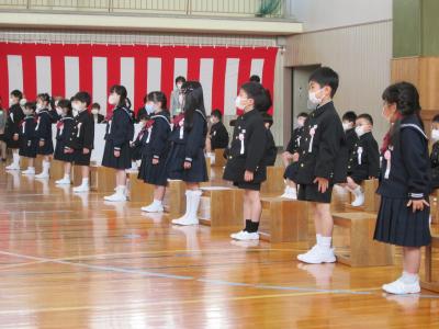 4月6日(水)うららかな春の日、令和4年度の入学式が挙行されました。今年度の新入生は34名。会場では、PTA会長様、保護者の皆様、6年生、教職員が、そして教室では、リモート参加の2~6年生が、新しく仲間入りした”福岡っ子”の入学を祝いました。呼名での元気いっぱいの返事や堂々とした姿が、とても素晴らしかったです。いよいよ、児童190名と教職員27名を乗せた「福岡丸」の出航です!。知恵と力と心を合わせて進んでいきますので、保護者・地域の皆様、あたたかいご支援をよろしくお願いします。