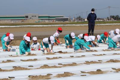 今年度も3年生と5年生が、総合的な学習の時間に、福岡町の岡元農場さん(代表 岡元豊さん)とJA根上さんにご協力いただき、農業体験学習に取り組みます。(3年生は、地元特産品「加賀丸いも」づくり、5年生は「ひゃくまん穀」米づくり) 3年生は13日(水)に丸芋の植え付け体験を、5年生は14日(木)に苗の観察を行いました。貴重な体験を通して地域や人々の工夫や努力を知り、課題をもって探究しながら、ふるさとへの愛着がますます高まることを願います。ご指導よろしくお願いします。