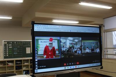 13日(火)2限目に、根上地区3小中学校の特別支援学級の「合同クリスマス会」がオンラインで開催されました。本校のつくし学級の児童3名は、初めての3校オンライン交流で緊張した様子も見られましたが、サンタさんが登場し、中学校の先輩が楽しく司会進行をしてくださったおかげで、緊張がほぐれました。和やかな雰囲気の中、各校で協力して準備してきた出し物などを披露し合い楽しんだあとは、一緒にクリスマスソングを歌ったり合奏したり・・・最後はお待ちかねのプレゼント交換をして会を閉じました。画面を通しながらも、笑顔あふれるあたたかい交流会となりました。また、ぜひ交流したいですね。