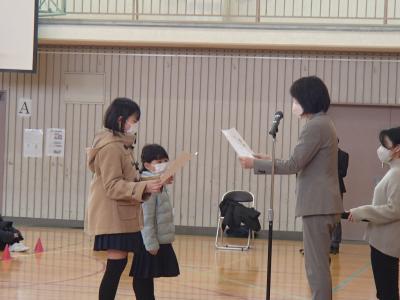 23日(金)3限目に、2学期終業式が行われました。前日からの大雪に見舞われ、とても寒い日になりましたが、全校児童が体育館に集合しました。式の初めに、石川県児童硬筆書写コンクールの表彰を行いました。このコンクールには、全校児童が9・10月の書写の時間に取り組み、13名が入賞し、学校賞も受賞しました。入賞者の呼名の返事も、代表児童の表彰状を受け取る姿も大変立派でした。大きな拍手が会場に響きましたね。福岡っ子みんなよく頑張りました。