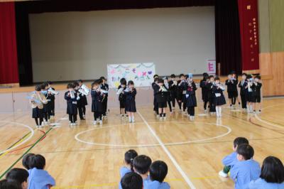 2月29日(木)3・4時間目に、1年生が「新1年生を迎える会」で、福岡保育園の年長児さんと迎えて仲良く交流をしました。1年生は生活科の時間に、準備や練習、飾り付けに一生懸命取り組み、本番は歌や合奏・ダンス・クイズを元気いっぱい披露しました。その後、学校案内と朝顔の種のプレゼントをして、楽しい時間を過ごしまた。可愛く元気な新1年生を迎える入学式が楽しみです。優しく頼れるお兄さん・お姉さんとして頑張る2年生に期待しています。