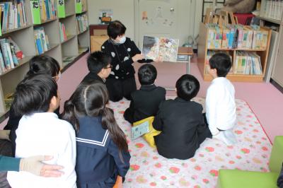 今年度の「おはなしの森」の図書ボランティアさん17名による朝の読み聞かせ・昼のお話会が終了しました。朝の読み聞かせは、月曜日に各クラスにて15回、昼のお話会は水曜日に絵本ルームにて16回行われ、本やお話の楽しさを味わうだけでなく、ボランティアさんとのおしゃべりも楽しみにしている児童も多くおり、心いやされる時間を過ごすことができました。また、図書室環境の飾りつけや整備もしていただき、図書室が子供たちの大好きな場所となりました。心よりお礼申し上げます。来年度に向け、新しい企画もあるそうです。児童・教職員一同楽しみにしています。
