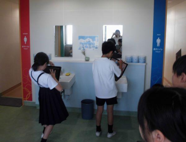 5年:学校の中のユニバーサルデザインを探して記録。自動手洗いを見つけました。