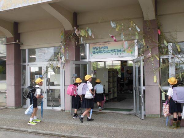 学校運営協議会の方から今年も竹をいただきました。みんなで飾りをつくり、願い事を書いて飾り付けをしました。みんなの願いが織姫と彦星にとどきますように。