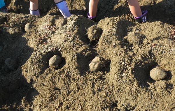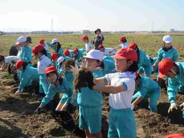 3年生が能美の宝である「丸いも」の収穫に挑戦しました。まず、岡本農場の方に掘り方を教えていただきました。丸いもを傷つけないように周りからやさしく掘ります。最後に丸いもを収穫かごにそっと入れて完了です。大きくて丸い丸いもがたくさんとれましたね。
