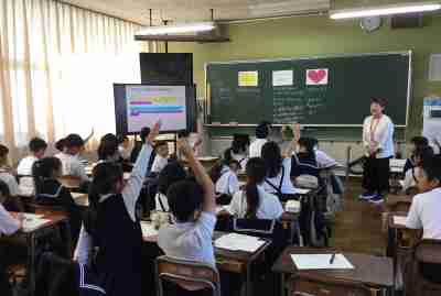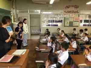1・2年生がJAISTの留学生と交流会を持ちました。「色」を英語だけでなく、いろんな国の言葉で表現し、様々な言語に親しみました。最後にみんなで行ったカラービンゴは大盛り上がりでしたね。