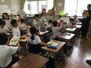低学年対象にのまりん劇場が開かれました。野間先生の紙芝居と楽しい歌とトークに、笑いありドキドキありの、あっという間の45分間でした。最後に代表児童からお礼のお手紙を渡しました。野間先生、来年も待っています!