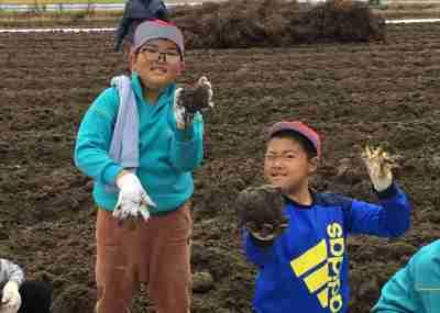 3年生がおうちの方と一緒に丸いもの収穫を行いました。枯れた蔓と支柱をはずすと、いよいよ収穫です。大きくて丸い「丸いも」を掘り出すたびに「やったー!」「大きい!」と歓声があがりました。ここまでお世話をしてくださった本先生ありがとうございました。100年以上前から能美市に伝わる丸いもです。大切に守っていきたいです。