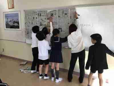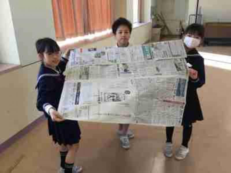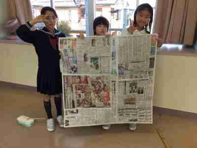 算数で面積の学習を行っています。今日はチームで協力し、新聞紙で1㎡を作りました。できた1㎡を見て「ピクニックに行くときの敷物みたい。」と知っているものに置き換え、しっかり量感をつかむことができました。。