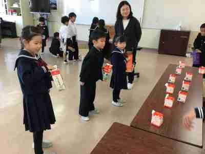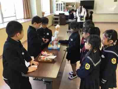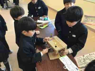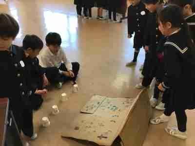 2年生が1年生を招待して「わくわくおもちゃランド」を開きました。迷路や的あてなどくふうされたおもちゃがいっぱいあってとても楽しい時間になりましたね。1年生に分かりやすく説明する2年生の姿も立派でした。