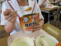 試食会後には、『脳力を発揮するための食事』をテーマに、市給食センター栄養教諭の方にお話ししていただきました。学力との関わりを示した資料から、朝食を食べるかどうかだけでなく、その品数も関わっていることを知り、多くの保護者が驚かれていました。また、給食センターの職員の方々が日頃より、いかに「安全・安心・おいしさ」にこだわって調理してくださっているかを知り、給食のありがたさを感じました。