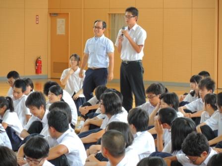 昨年度3年生だった身近な先輩のお話ということで、3年生は真剣な様子で意欲的にお話を聞いていました。部活動や苦手教科の克服方法などの質問も出ていました。