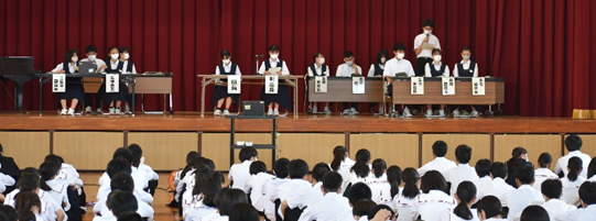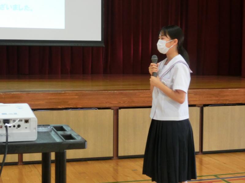 5月25日、生徒総会が行われました。事前に行われた学級討議でたくさんの意見が出され、委員長が返答しました。生徒会活動に熱心に取り組む姿はさすが最上級生!この後の生徒会活動も盛り上げていきましょう。