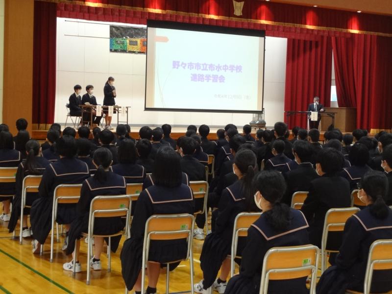 令和4年度2年生 進路学習会 投稿日時 : 2022/12/09 管理者① 12月9日(金)5限に野々市明倫高等学校の先生と先輩をお招きして進路学習会を行いました。 生徒たちは将来の自分の姿を考えながら真剣に話を聴いていました。 0 {{options.likeCount}} {{options.likeCount}}