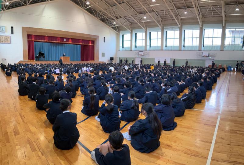 4限目に全校が体育館に集まり 終業式を行いました。